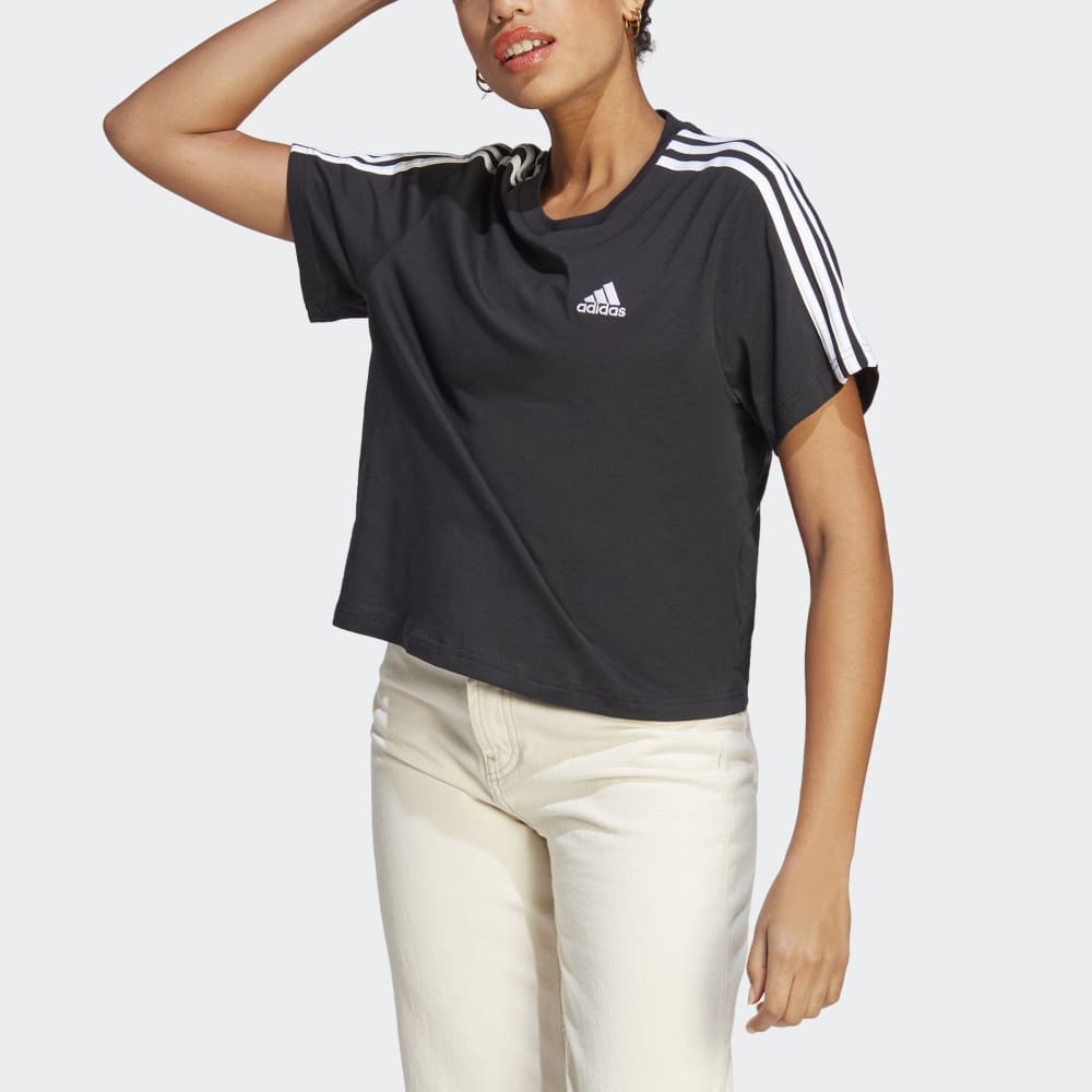 ADIDAS ESSENTIALS 3-STRIPES SINGLE JERSEY CROP TOP - BLACK