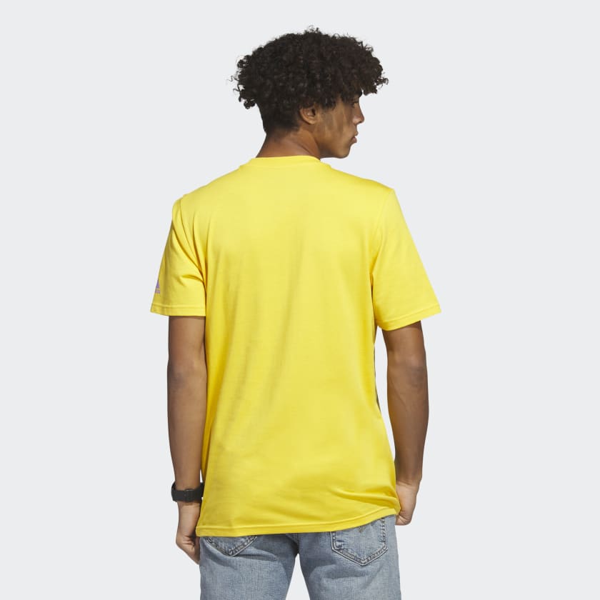 Nothing is more relaxing than laying on a beach towel and soaking up the sun. This adidas t-shirt channels that beachy vibe with an 8-bit graphic of clear skies and palm trees. Cotton single jersey is as soft as the warm breeze you feel when you're on vacation.