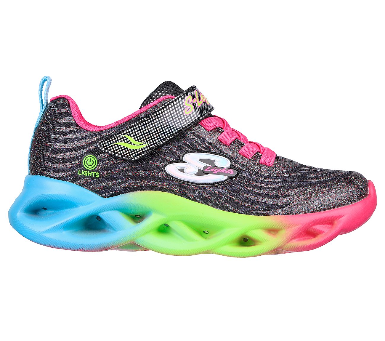 Dazzle your steps in style and comfort with Skechers S-Lights: Twisty Brights - Color Radiant. This casual lightweight slip-on features a mesh and glitter synthetic upper with a light-up midsole.