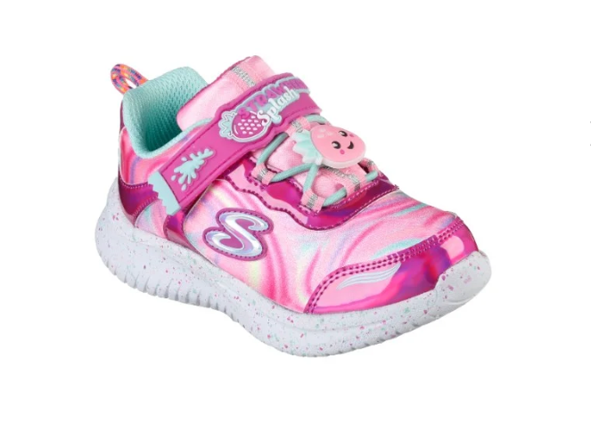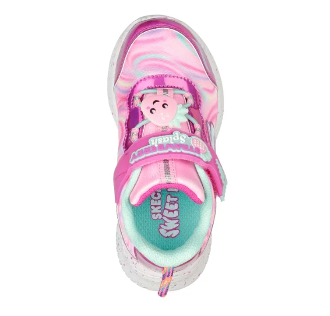 Pair your feet with a sweet treat in Skechers Jumpsters - Sweet Kickz. This colorful slip-on features a sweet scented theme, swirl print mesh and synthetic upper with stretch laces, cushioned comfort insole and an instep strap closure.
