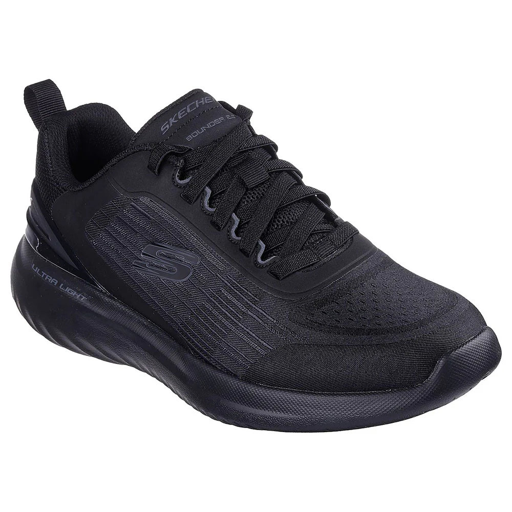 Stay active in flexible and lightweight comfort wearing Skechers Bounder 2.0 - Jernus. This sporty vegan design features an engineered jacquard knit upper with stretch laces and a cushioned Skechers Air-Cooled Memory Foam® insole.