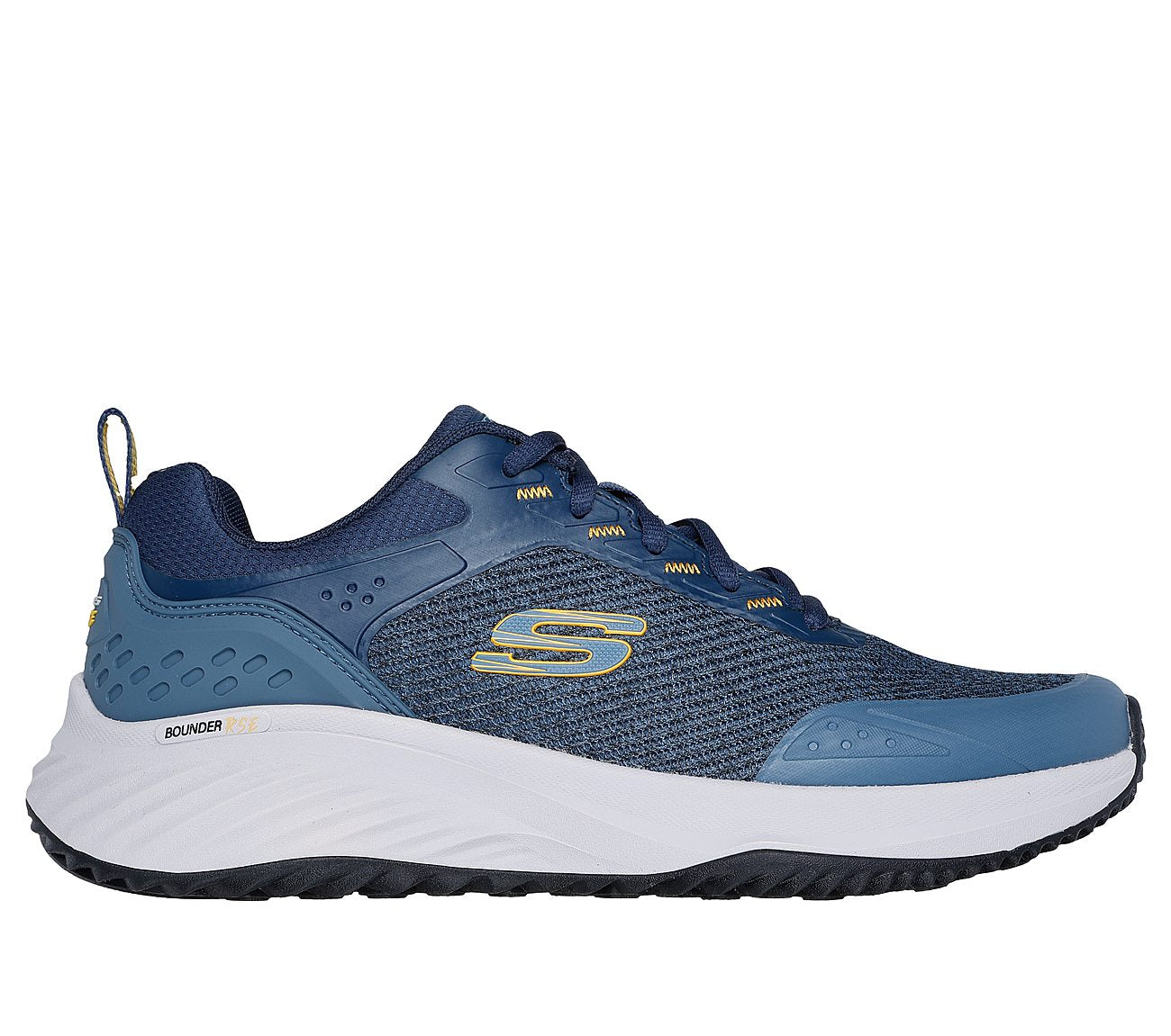 Skechers Tennis ShoesBridge the gap between flexible athletic comfort and sporty style with the SKECHERS Bounder - Verkona shoe. Woven mesh and synthetic upper in a lace up sporty comfort sneaker with woven designs. Air-Cooled Memory Foam insole, highly flexible comfort midsole.