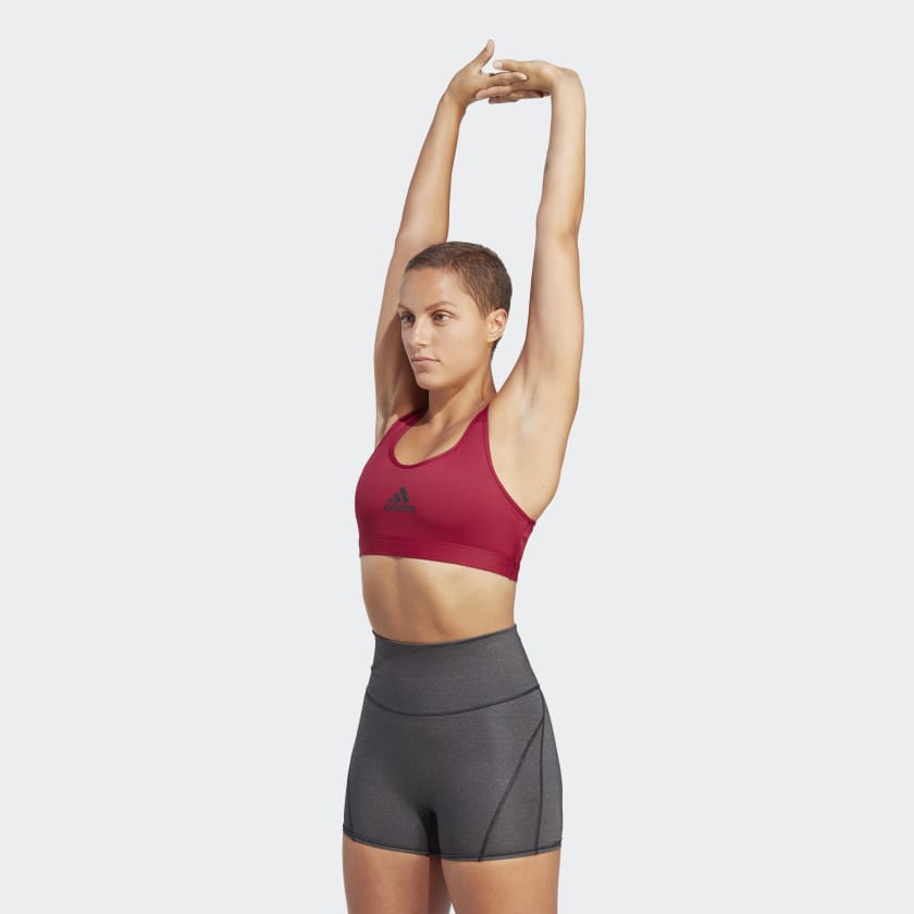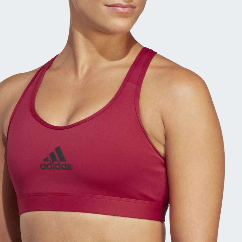 Feel supported, no matter whats on your training schedule. From HIIT to pickup games to cycle class, this adidas medium-support bra helps keep your mind on the movement. The slick fabric is cool to the touch, and moisture-absorbing AEROREADY ensures you stay dry.Made with a series of recycled materials, and at least 70% recycled content, this product represents just one of our solutions to help end plastic waste.