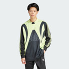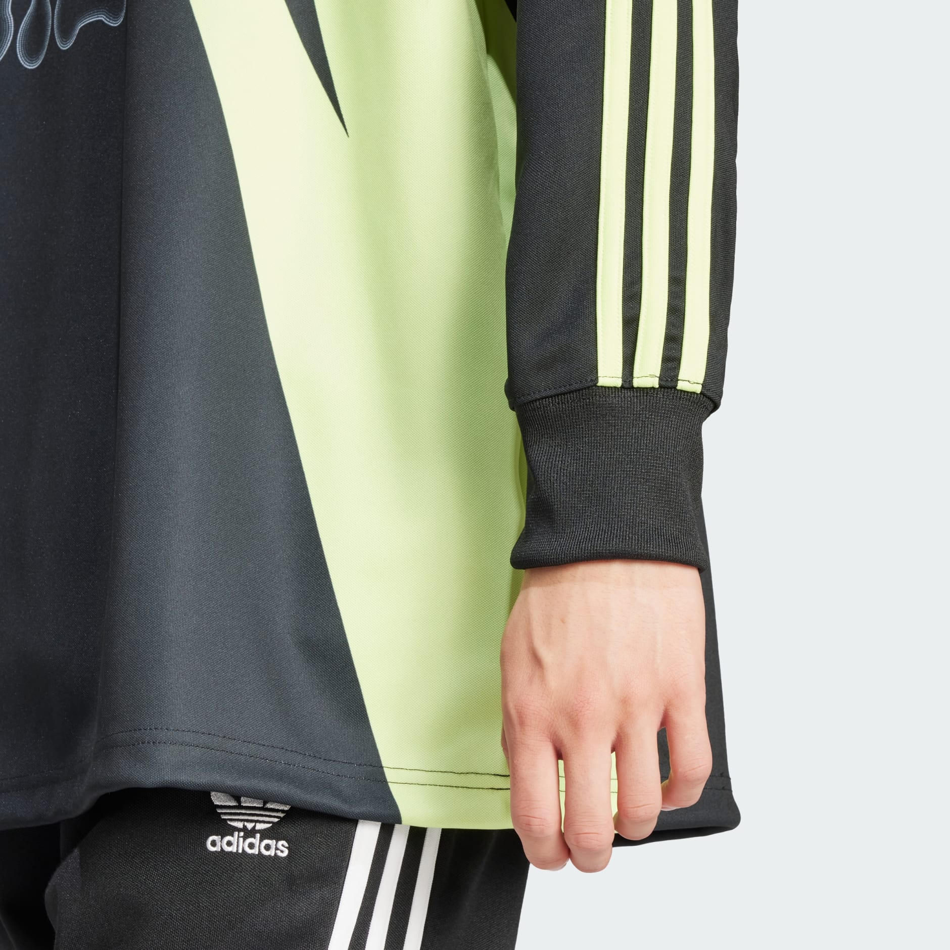 Make a statement with this adidas Rekive Goalie Top. An archival design inspired by classic football and team sport styling, this long sleeve graphic shirt is designed for everyday casual wear. The bold look features an oversized Trefoil print on the back and an adidas graphic on the front. Linear lines throughout echo the 3-Stripes that run down the sleeves. It's finished with a loose fit that creates a laid-back look and feel. A minimum of 70% of this product is a blend of recycled and renewable materials.