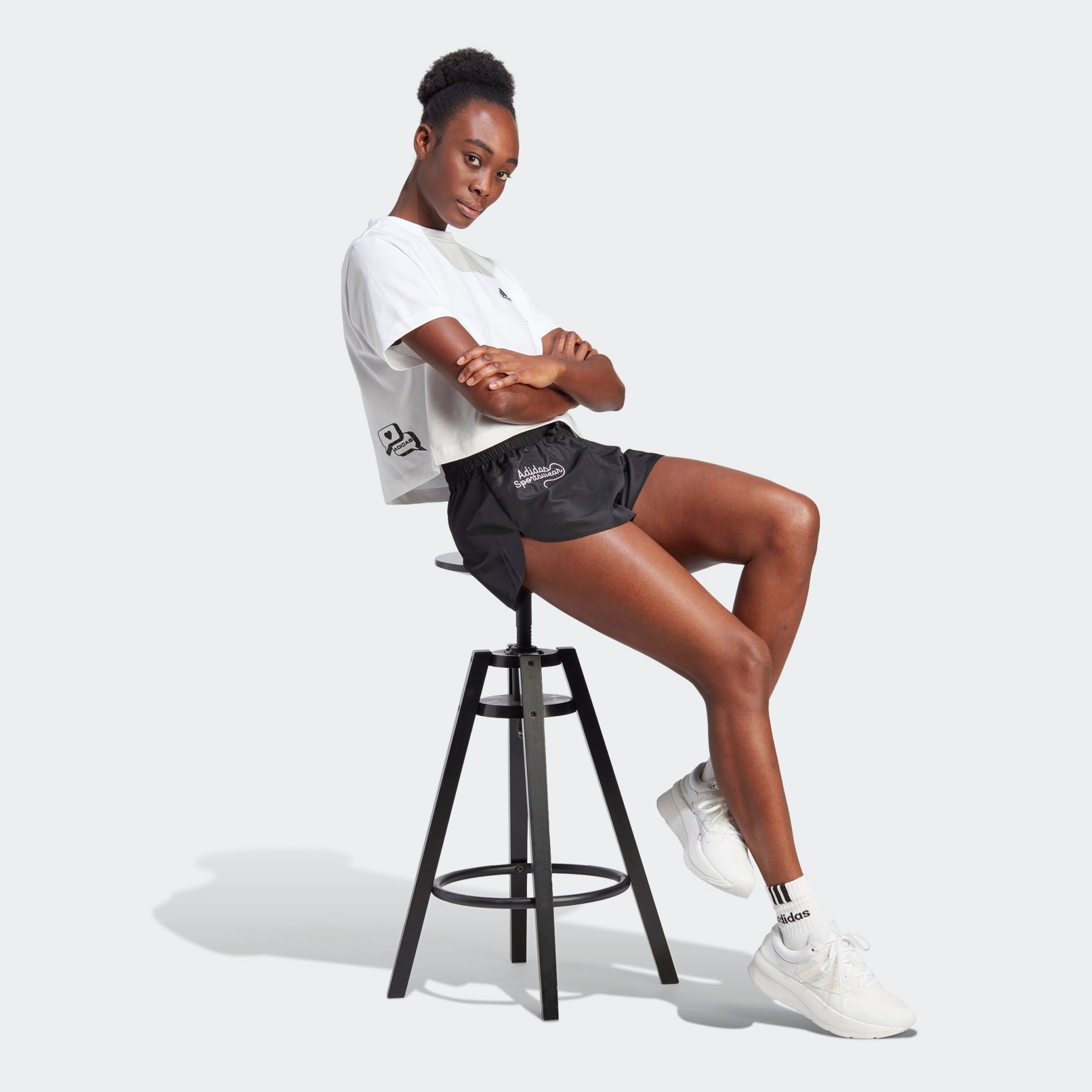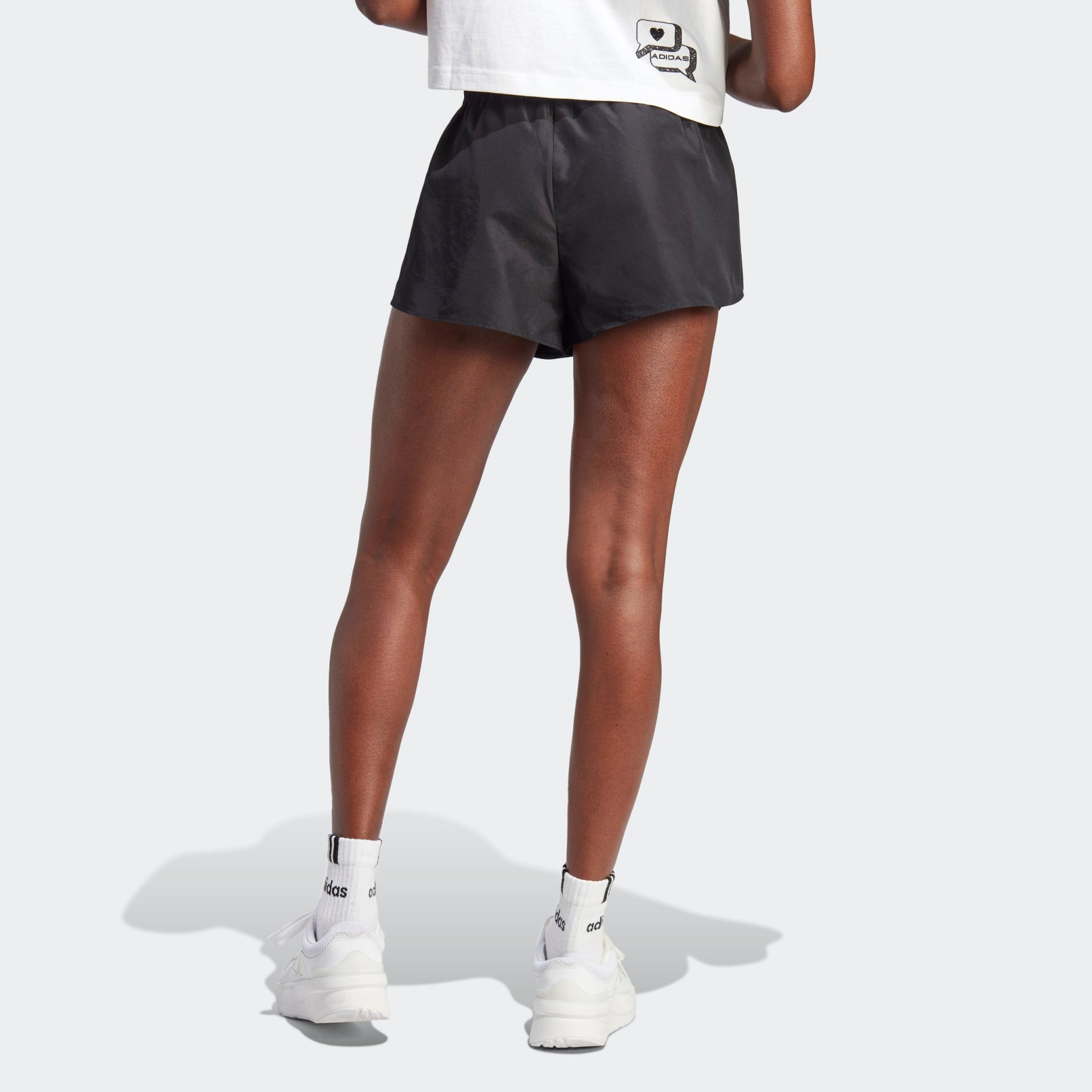 Make friends, make memories — and make a strong impression. These adidas shorts are the kind everyone will remember thanks to their sporty, doodle-style graphics. Cut for a loose fit with shaped hems for extra movement, the shorts are great for relaxing in the garden or enjoying some beach time. A minimum of 70% of this product is a blend of recycled and renewable materials.
