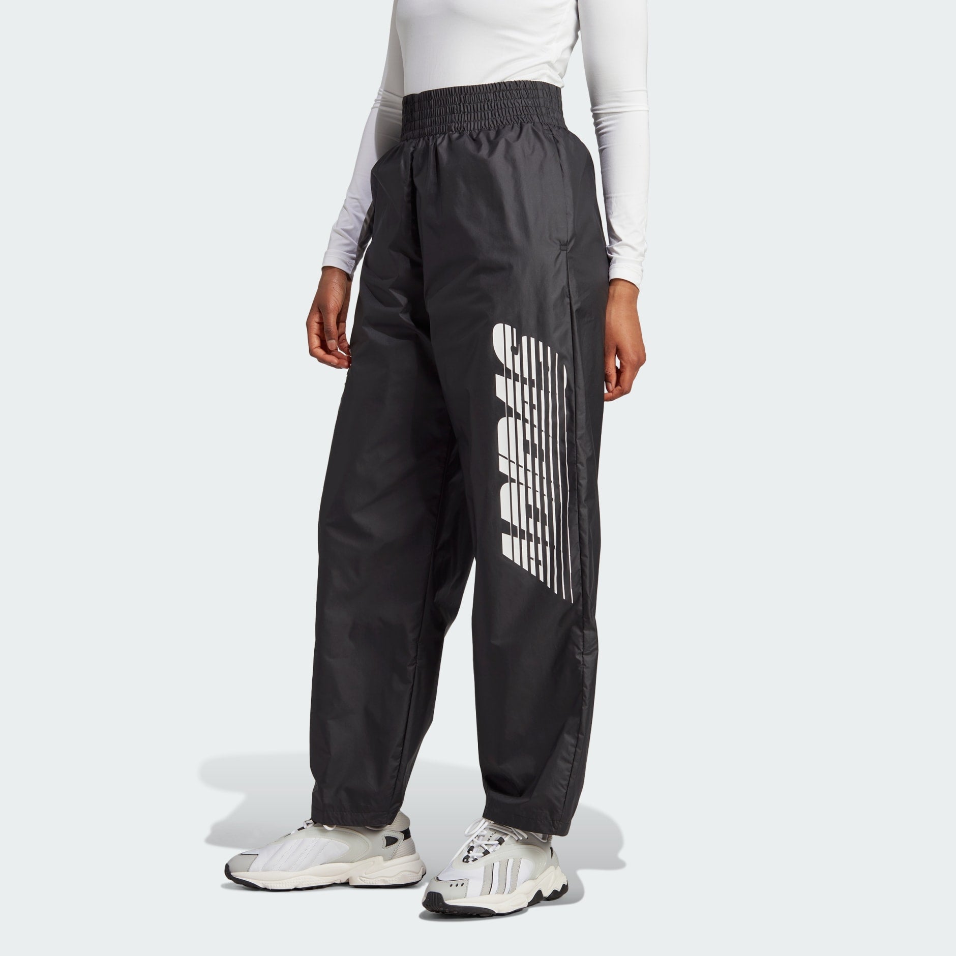 Achieve an out-of-this-world look in these striking adidas track pants. With vivid graphics stacked along the leg, these versatile pants are giving major Y2K vibes with a futuristic twist. Their plain weave build and comfortable elastic waist guarantee a fit that's relaxed and easygoing. Wear them with an oversized tee or crop hoodie and tackle your day with confidence and style. Made with 100% recycled materials, this product represents just one of our solutions to help end plastic waste.
