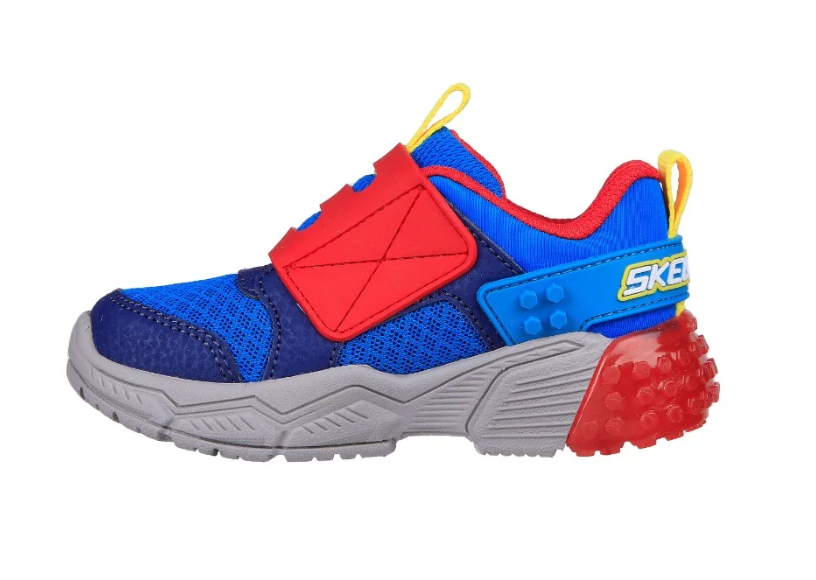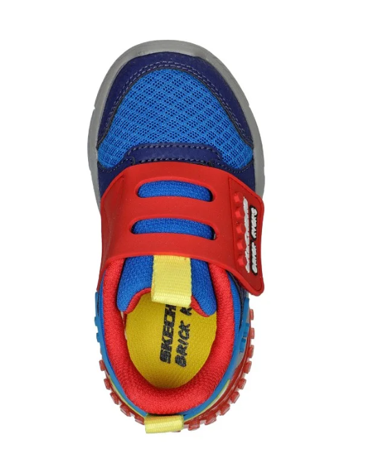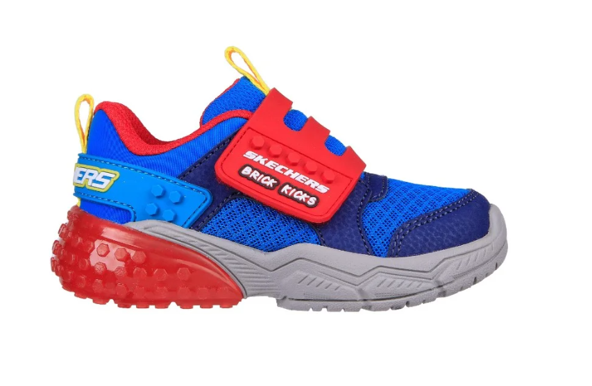 Colorful fun and comfort combine in Skechers Brick Kicks™: Lil Thermoflux. This Brick Kicks™ themed design features a mesh and synthetic upper with a hook and loop strap.