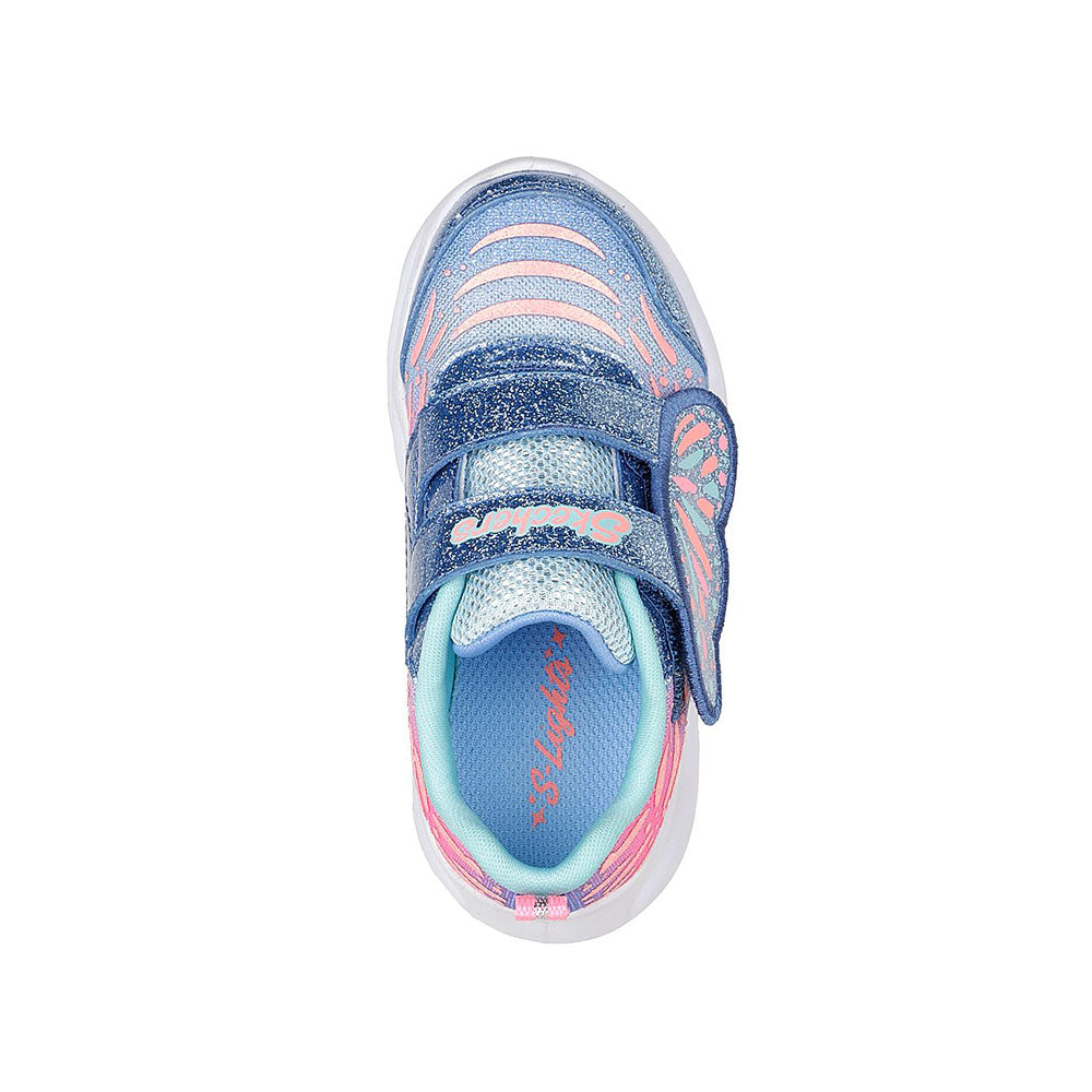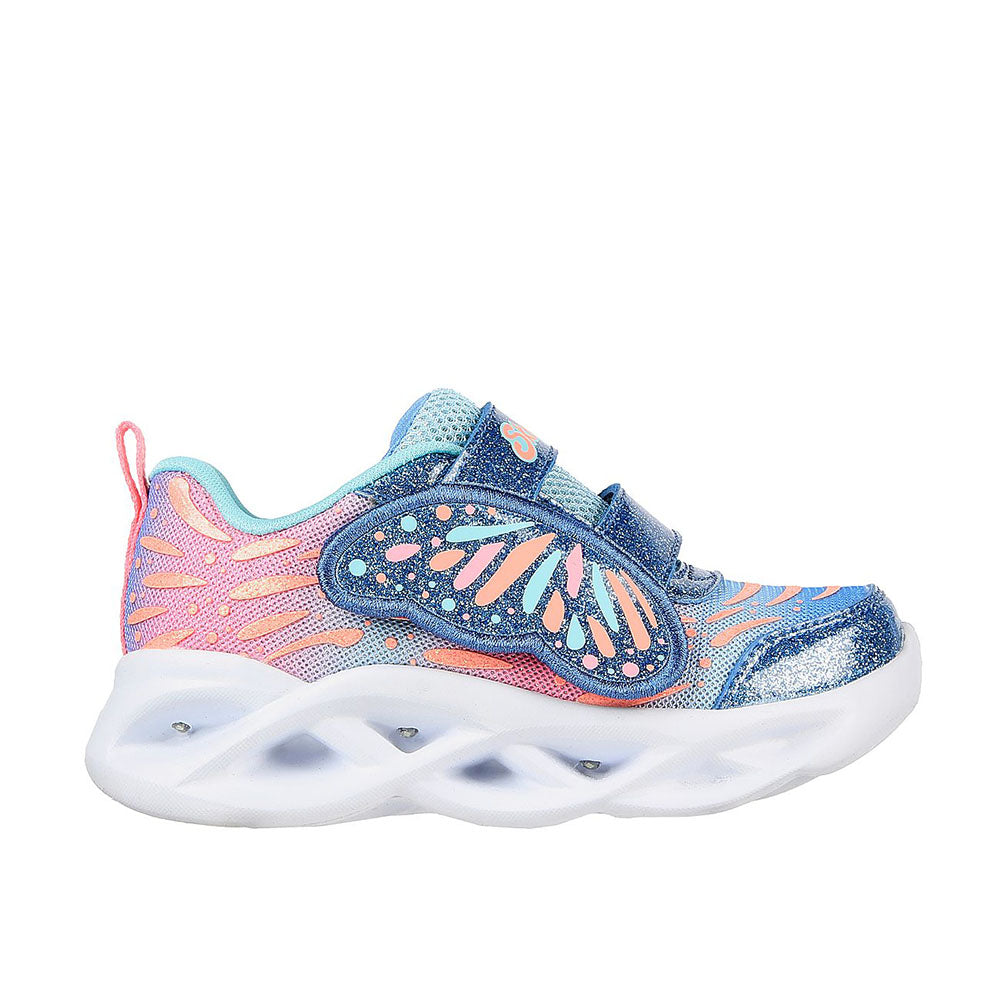 Dazzle your steps in style and comfort with Skechers S-Lights: Twisty Brights - Wingin' It. This casual lightweight slip-on features a mesh and glitter synthetic upper with butterfly wing instep strap, plus a light-up midsole.