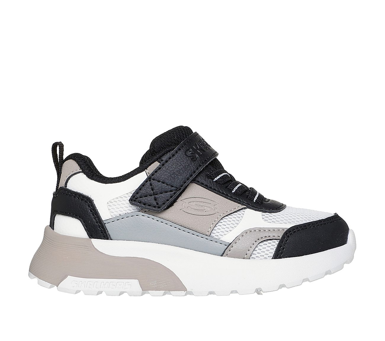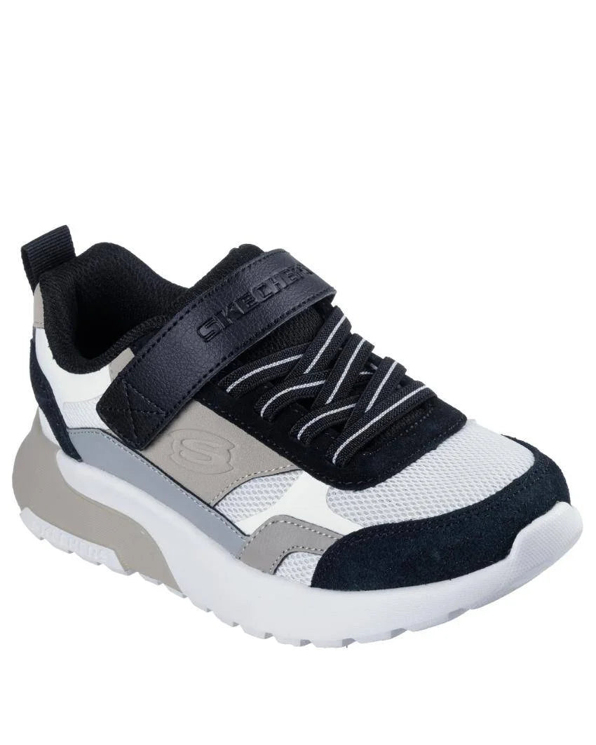 They'll be ready to hit the playground in sporty comfort with Skechers SKX-225. This lightweight design features a color-blocked mesh, synthetic, and leather overlay upper with stretch laces, an adjustable instep strap, and a cushioned comfort insole.