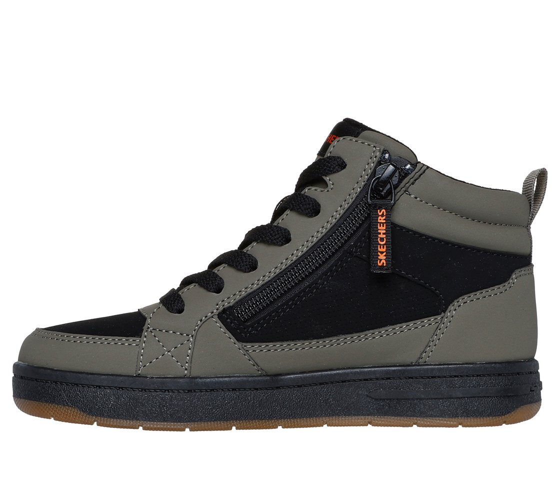 Stay comfy from school days to weekend playground fun wearing Skechers Street™ Smooth Street - Cozy Zip. This cozy fleeced lined high-top sneaker features a synthetic upper with front laces, Skechers adaptive closure, and a cushioned comfort insole.