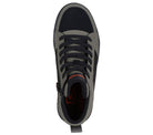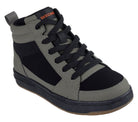 - Court style high-top with front laces and side zip closure