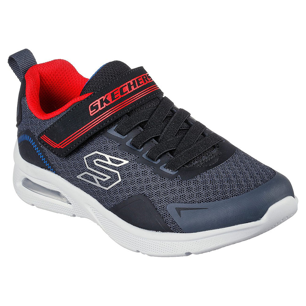 Add some extra comfy cushioning to a sporty style with Skechers Microspec Max - Ravork. This lightweight design features a mesh and synthetic upper with stretch laces and a visible Skech-Air® airbag midsole.