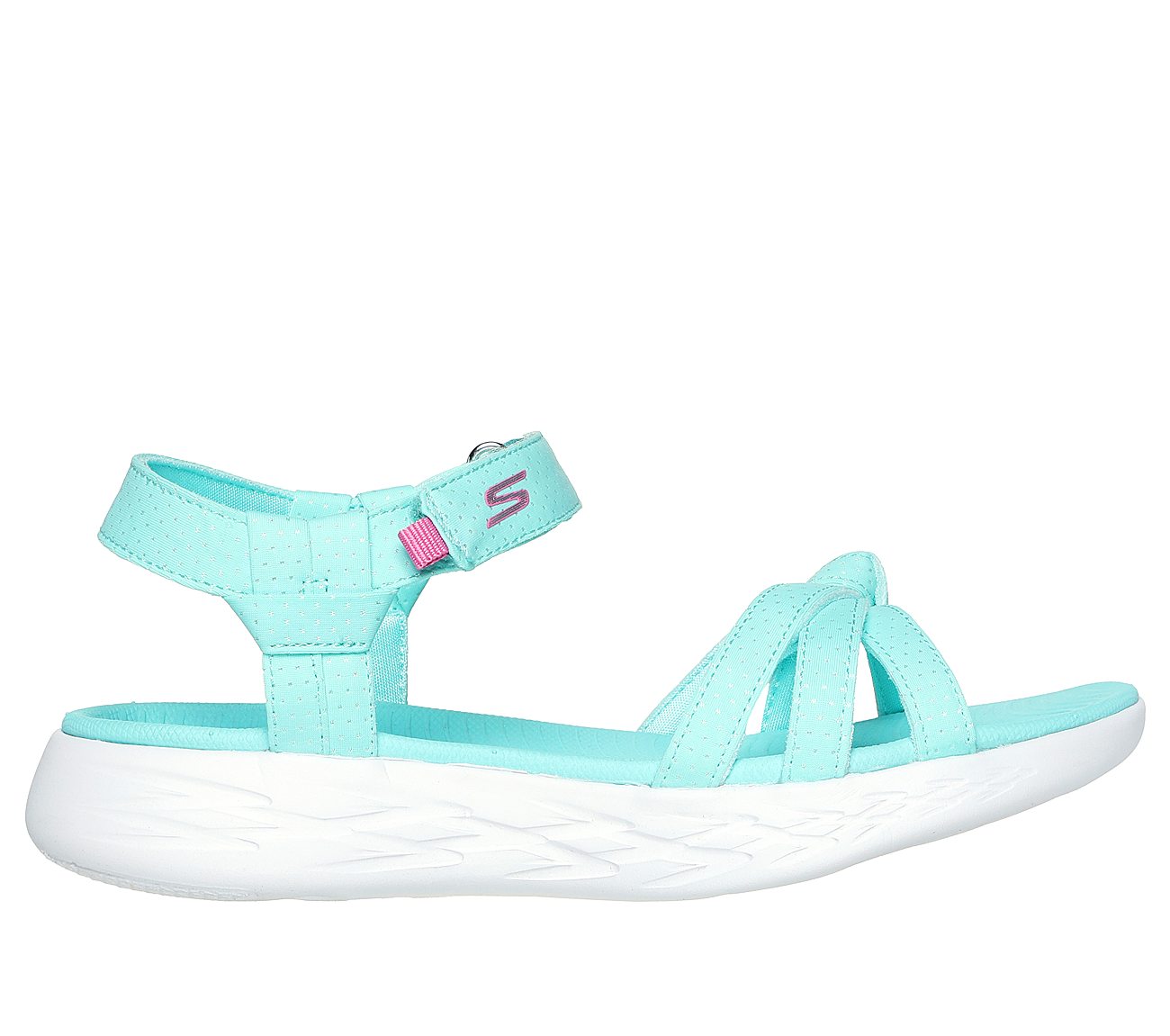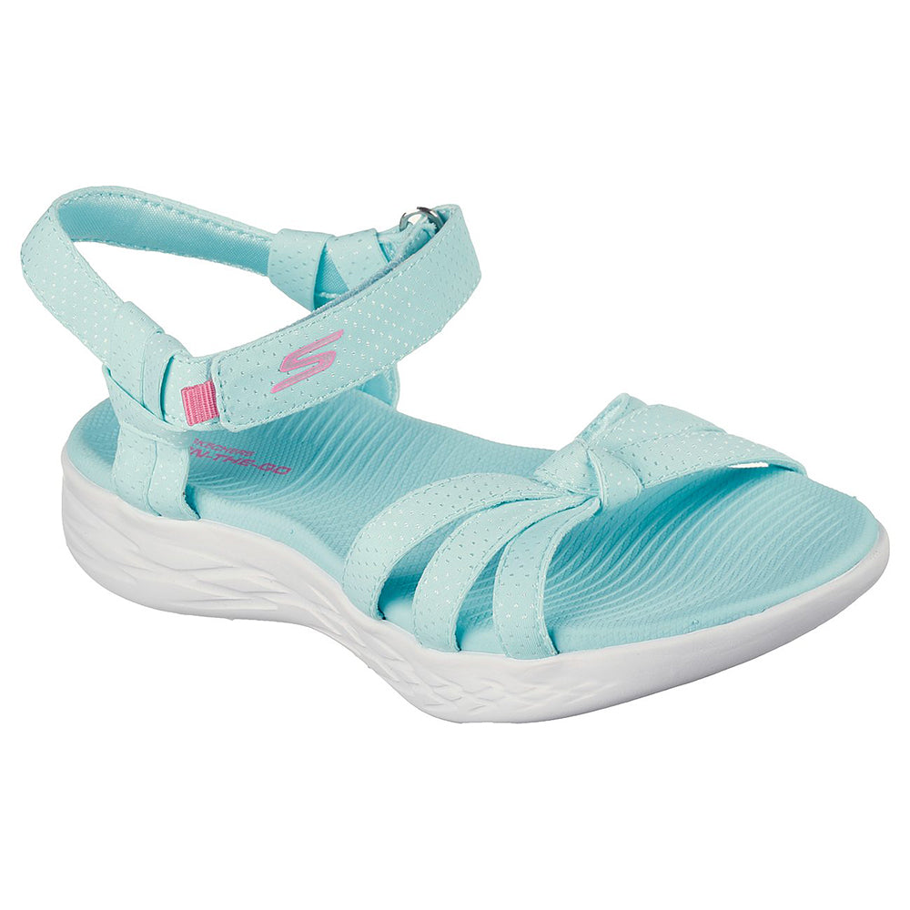 Spend sunny-weather days in style and comfort with Skechers On-the-GO® 600. This lightweight strappy sandal features a soft textile upper with a contoured Goga Mat® comfort footbed.