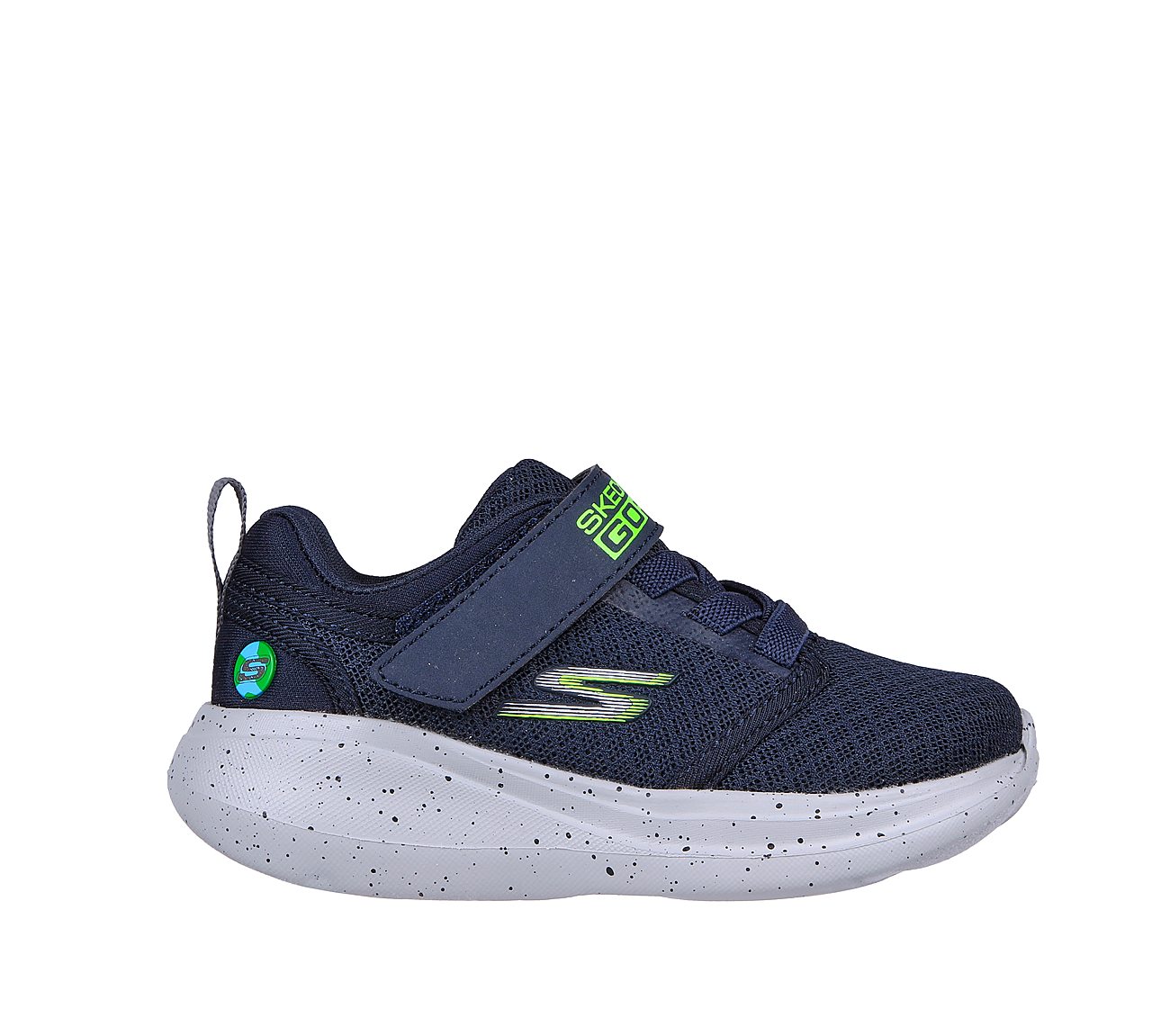 Constructed with recycled materials, this lightweight slip-on upper features breathable yet strong mesh with elastic laces and a Velcro strap. Cushioned sole.