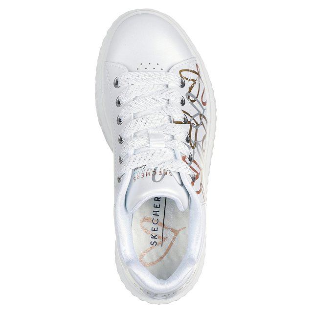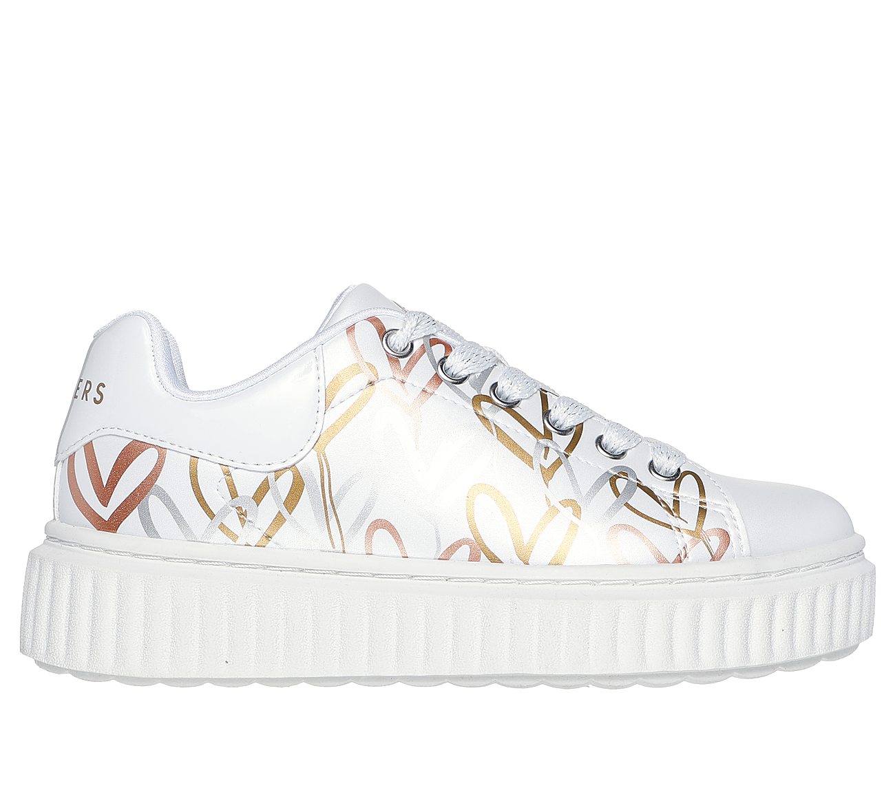 Internationally renowned muralist James Goldcrown brings his iconic #Lovewall heart designs to Skechers in this inspiring collaboration. Flaunt your love for love in Skechers Street™ x JGoldcrown: Hi Ridge. This lace-up fashion sneaker features the artist's signature heart design on a cushioned comfort insole and platform outsole.