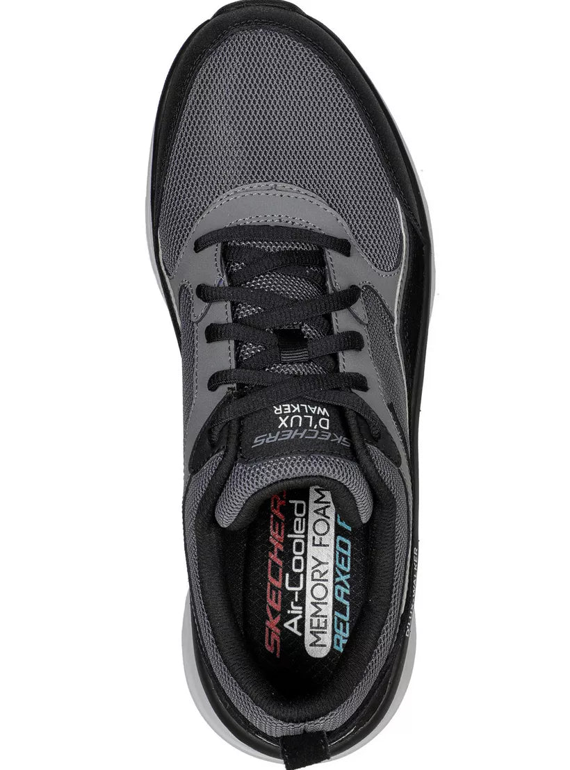 Experience exceptional cushioning in every step wearing Skechers Relaxed Fit, : D'Lux Walker - New Moment. This lace-up athletic walking design features a leather and engineered mesh upper with a Skechers Air-Cooled Memory Foam, cushioned comfort insole.