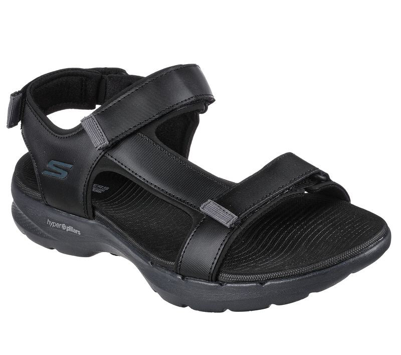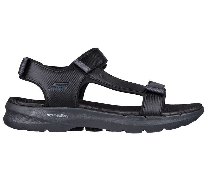 Warm-weather style gets an upgrade in comfort with Skechers GO WALK® 6 Sandal. This river style sandal features a synthetic upper with adjustable straps, a contoured Goga Mat® comfort footbed, lightweight ULTRA GO® cushioning and Hyper Pillar Technology™ for added support.