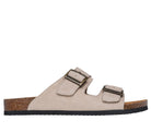Slide into bohemian comfort and style wearing Skechers Relaxed Fit : Aidan - Leelan. This casual dual-strap slide sandal features a genuine suede upper with metal buckle closures, a contoured footbed, and a cork-style midsole.
