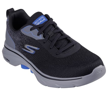 Take your strides in lightweight comfort wearing Skechers GO WALK 7™ - Ennoble. This lace-up vegan walking style features a gradient knit upper with synthetic overlays, a Skechers Air-Cooled Goga Mat™ insole, lightweight ULTRA GO® cushioning, and high-rebound Hyper Pillar Technology™ for added support.