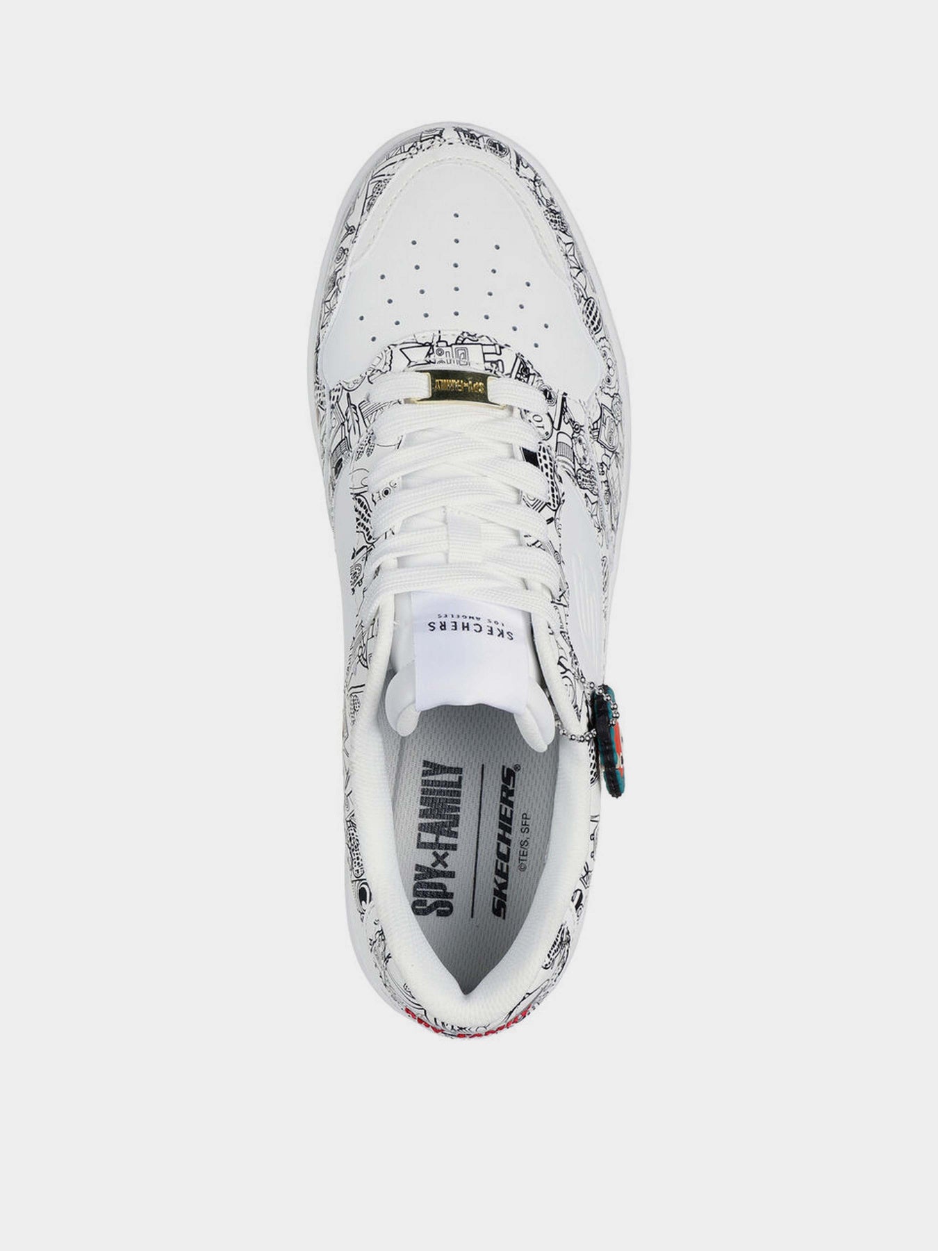 Skechers Jade Spy x Family Men's Low Top Sneakers: Koopa - Spy x Family. Inspired by the popular anime, these shoes feature vibrant graphics of Twilight, Anya Forger and Princess Spikes, a lace-up detail with the words "SPY x FAMILY" and a comfortable insole. Features: • Soft Air Cooled Memory Foam™ footbed • Flexible outsole for traction • Synthetic duraleather leather upper.