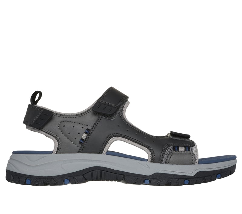 Travel all day in long-lasting comfort with Skechers Relaxed Fit®: Prewitt - Rigdon. This roomy vegan sandal features a synthetic upper with 3 adjustable strap closures and a cushioned Luxe Foam® footbed.