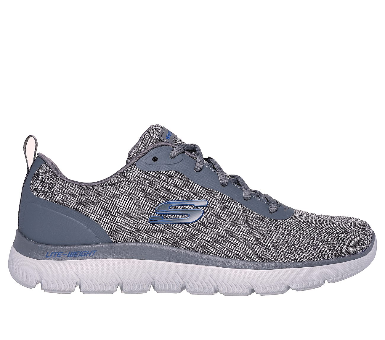 Happier feet are just a step away with Skechers Summits - Forrader. This vegan active design features a heathered mesh and synthetic upper with a lace-up front and a Skechers Memory Foam™ cushioned comfort insole