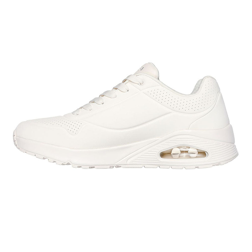 An iconic classic gets a fresh update in Skechers Street™ Street Uno - Stand on Air. This lace-up fashion sneaker features a smooth perforated synthetic upper with a Skechers Air-Cooled Memory Foam® insole and Skech-Air® visible airbag midsole.