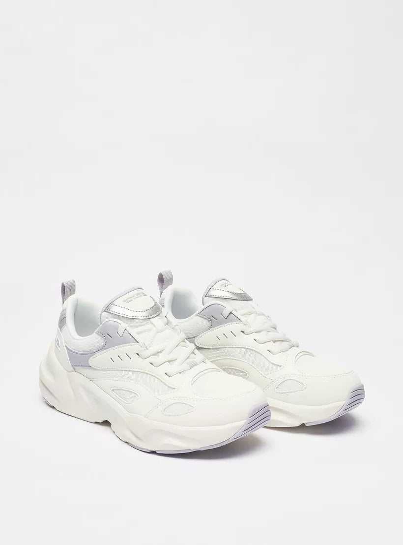 Consider this pair of low-ankle sneakers by Skechers for your footwear collection. The panelled exterior gives a visually appealing look, while the memory foam cushioning and chunky outsole provide efficient support and comfort. Durable and resilient, this classy pair is fastened securely with lace-up closure and finished with pull tabs at the back.