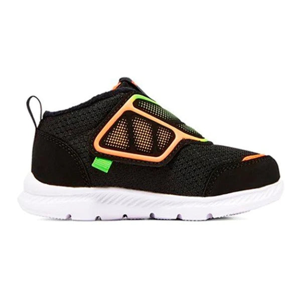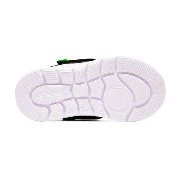 EVA material, light and comfortable; The upper of the shoe is made of mesh with artificial leather material, and the artificial leather of the toe cap is reinforced to provide certain anti-kick protection; The strapping method of the airplane wing is adopted to facilitate the putting on and taking off of children, and the color on the airplane wing adopts a gradient process effect to enhance the overall texture; The fleece interior is designed to suit winter wear.