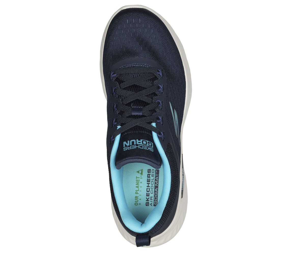 Workout in comfort and peace of mind wearing Skechers GO RUN® Lite. This vegan performance lace-up features a breathable recycled mesh upper with an Air-Cooled Goga Mat™ comfort insole and a lightweight ULTRA GO® cushioned midsole. Our Planet Matters™: Good for your feet. Good for the world.