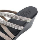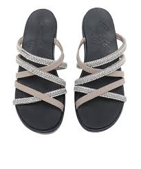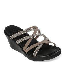 Step out with a glam look in Skechers Cali® Rumble On - Night Out. This strappy wedge slide sandal features a synthetic strap upper, glittering rhinestone details and a cushioned Luxe Foam® footbed.