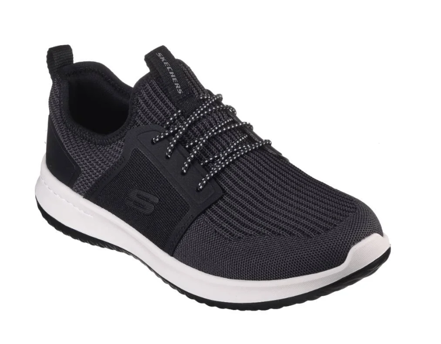 A favourite versatile style gets even more comfortable in the Skechers Delson - Verden shoe. This slip-on sneaker features a lightweight mesh knit and smooth Syntheticupper with a stretch-laced front and a cushioned Air-Cooled Memory Foam® insole.