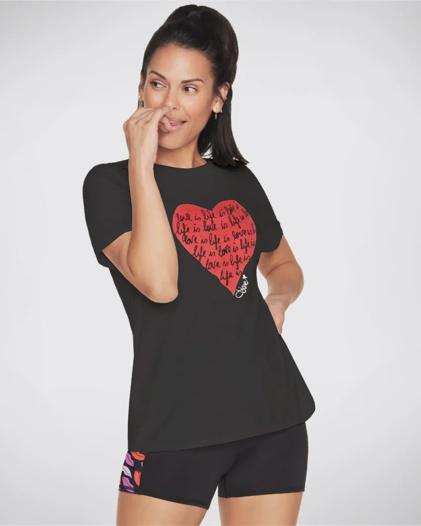 Legendary fashion designer Diane von Furstenberg brings her celebrated prints to Skechers in this limited-edition collaboration. Show your love for DVF wearing Skechers x Diane von Furstenberg: Diane Heart Tee. This short sleeve crewneck tee features a large heart graphic on the center chest.