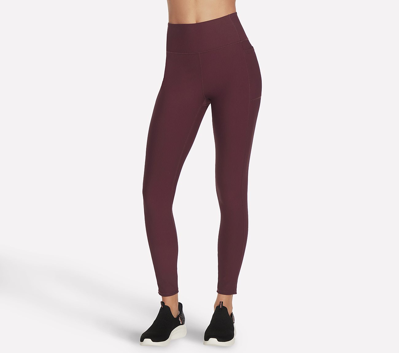 Play up the texture and the support during your workouts with Skechers GO FLEX RIB™ FL HW Legging. This full length, high-waisted active legging features a GO FLEX RIB™ moisture-wicking nylon and spandex blend fabric with exterior side pockets and a double layer compression waistband.