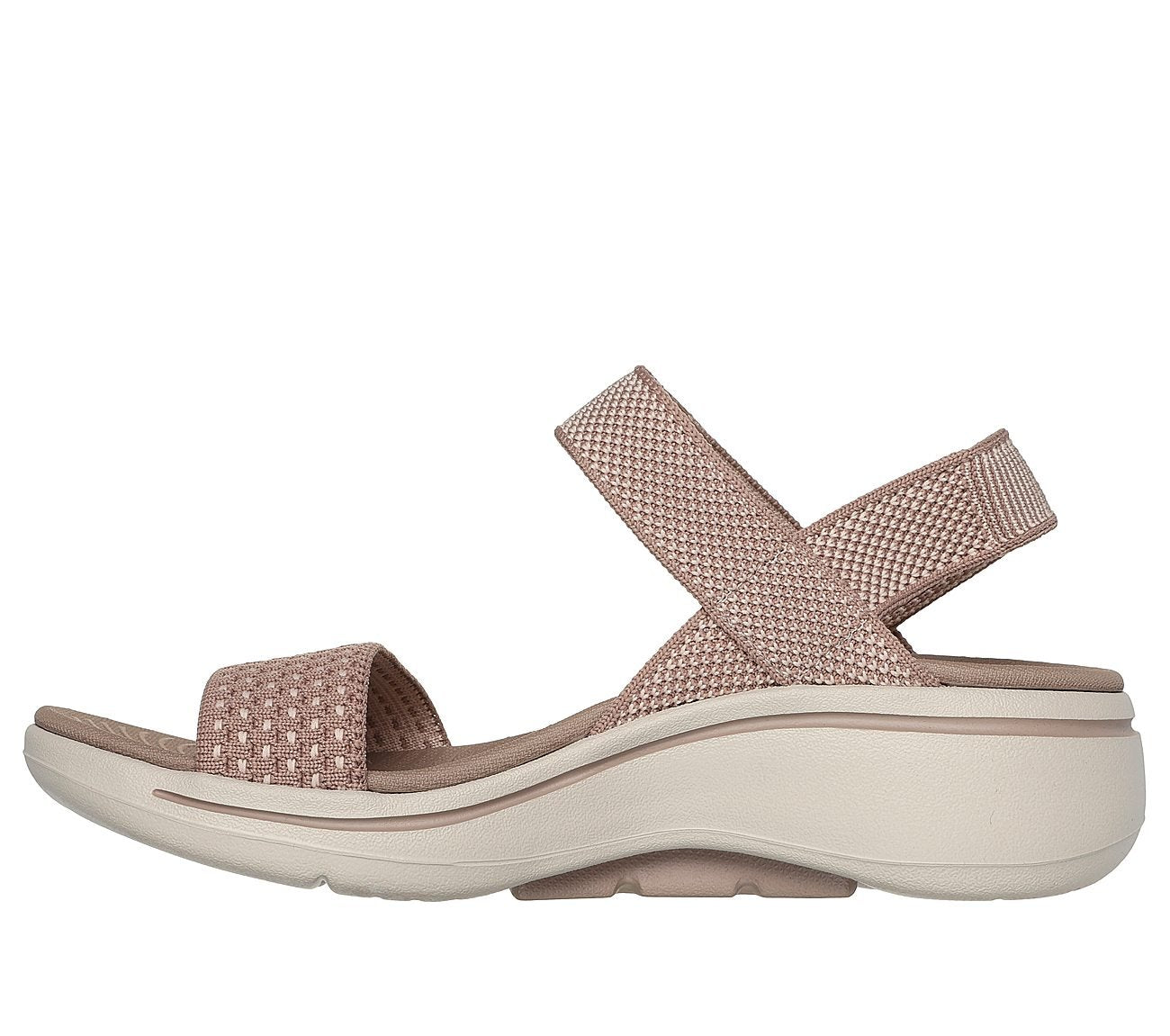 APMA Seal of Acceptance, Arch Fit, Comfort Pillar Technology, Contoured Goga Mat Footbed, Machine Washable, Ultra Go. Warm-weather style and supportive comfort combine in Skechers GO WALK® Arch Fit® Sandal - Polished. This Arch Fit® designed sandal features a mesh knit strap upper with a hook-and-loop closure, contoured Goga Mat® footbed, lightweight ULTRA GO® cushioning, and Comfort Pillar Technology® for added support