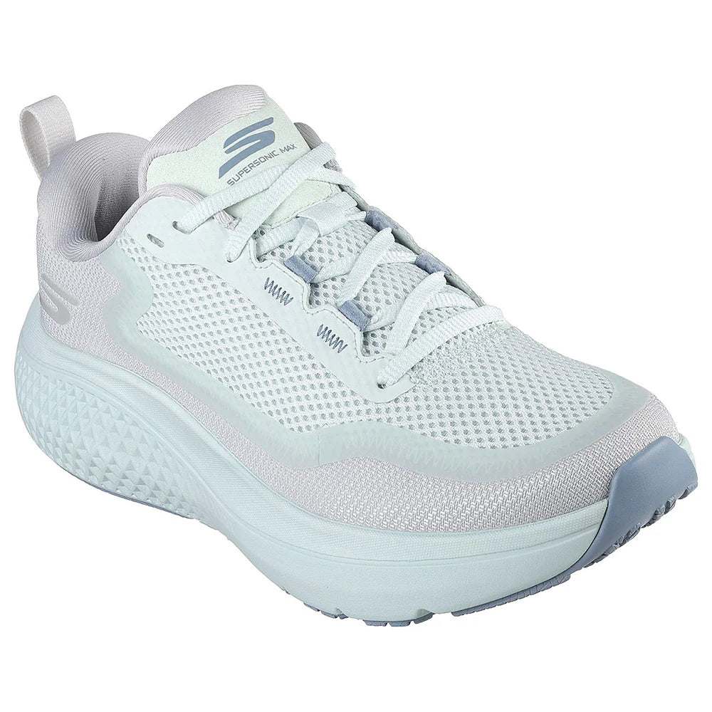 Comfort and running technology combine in Skechers GO RUN® Supersonic Max™. This running design features a lightweight athletic mesh upper with lightweight ULTRA GO® cushioning, a Goga Max technology insole, and a Hyper Arc™ carbon infused winglet plate.