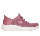 Experience ultimate comfort with Skechers Hands Free Slip-ins®: Skech-Lite Pro Natural Beauty. This stylish lace-up, made from vegan materials, boasts a unique Heel Pillow™ and a breathable heathered mesh upper, complemented by a cushioned Skechers Air-Cooled Memory Foam® insole for that extra comfort. Finished in a lovely Mauve colour.