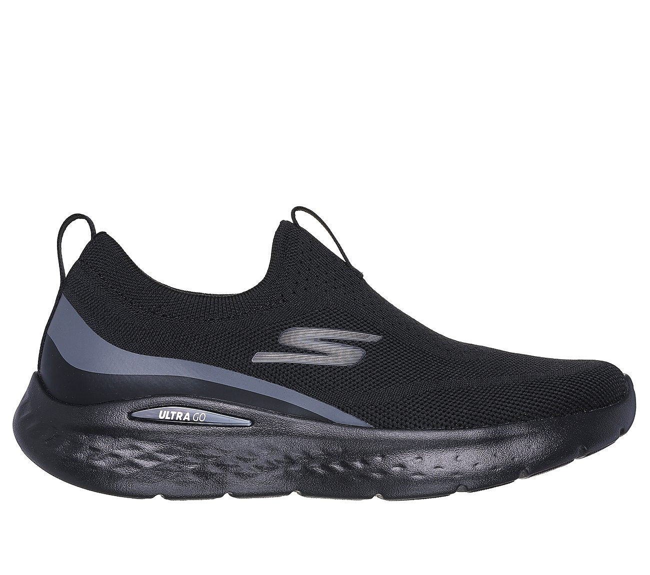 Workout in comfort and peace of mind wearing Skechers GO RUN® Lite. This laceless Stretch Fit® performance style is designed with a breathable recycled mesh upper, an Air-Cooled Goga Mat™ comfort insole, and a lightweight ULTRA GO® cushioned midsole. Our Planet Matters™: Good for your feet. Good for the world.™