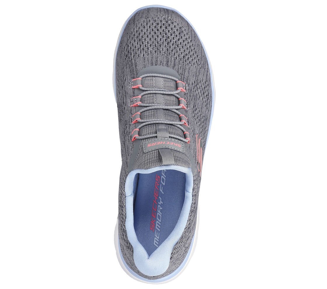 Athletic style and flexible comfort combine in Skechers Summits - Fun Flair. Featuring a heathered engineered mesh upper with stretch laces and a cushioned Skechers Memory Foam™ comfort insole.