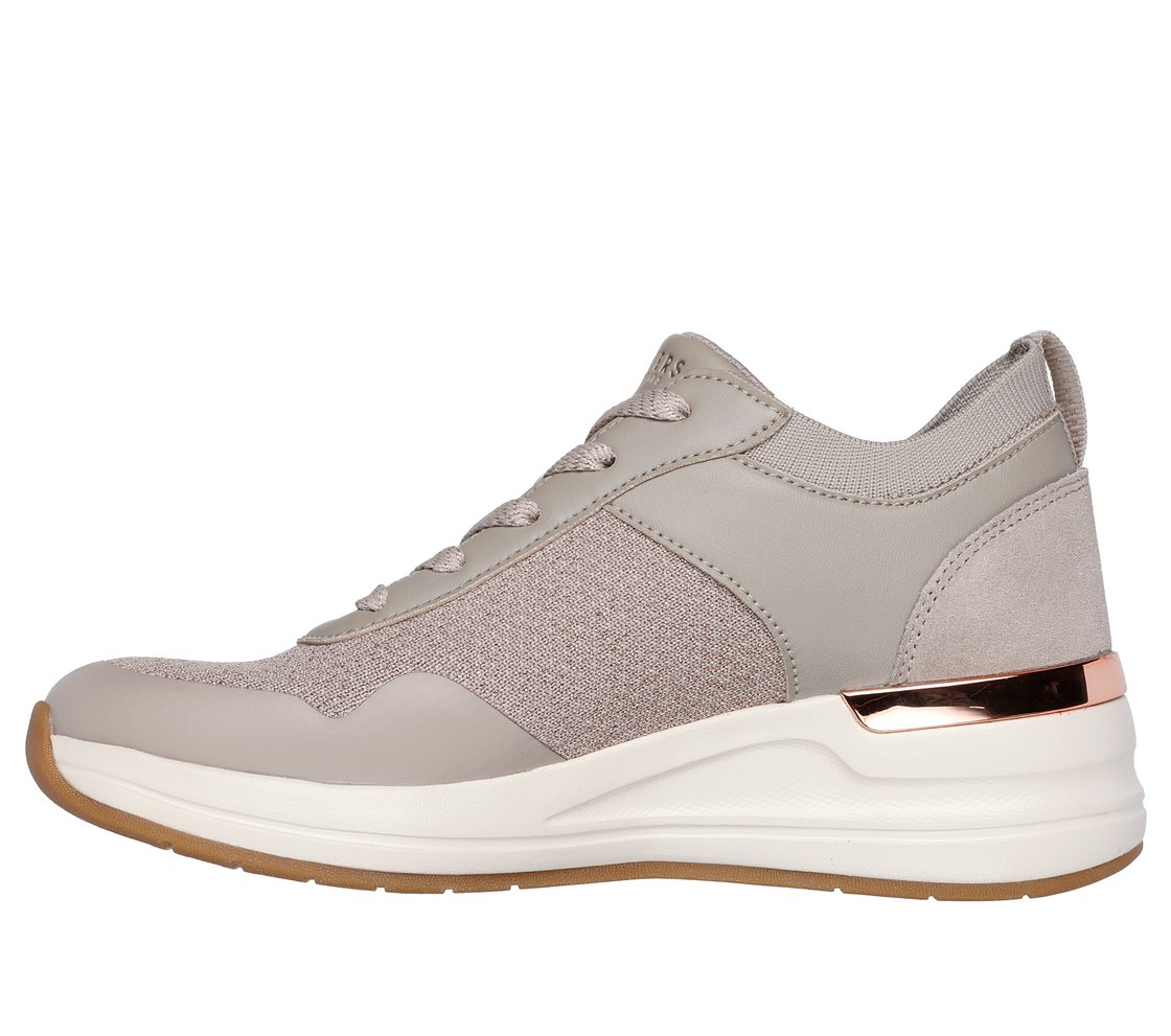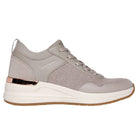 Shine in sporty style wearing Skechers Street™ Billion 2 - Winning Streak. This fashion lace-up features a sparkle knit, duraleather, and suede upper with a ribbed collar, a wedge-fit midsole and a Skechers Air-Cooled Memory Foam® insole.