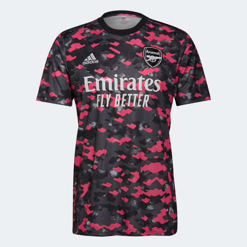 After days of preparation at the training ground, those last few sprints and stretches on the pitch add the finishing touch. Arsenal players wear adidas soccer jerseys like this one when they warm up before kickoff. Soft fabric and moisture-absorbing AEROREADY help them focus. A club badge in white stands out against the vibrant design and highlights your pride. This product is made with Primegreen, a series of high-performance recycled materials.