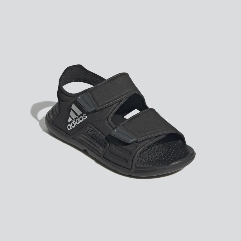 Sunscreen, check. Bucket hat, check. Blow-up unicorn? Maybe later. Let your aquanaut explore the shore in these kids' adidas sandals. Adjustable hook-and-loop straps create a snug fit that adds oomph as they skip stones. A grippy outsole leaves tracks in the sand as the sun sets on their perfect day.