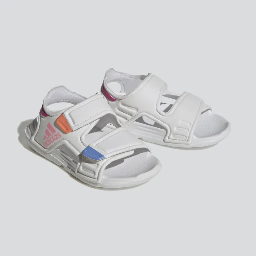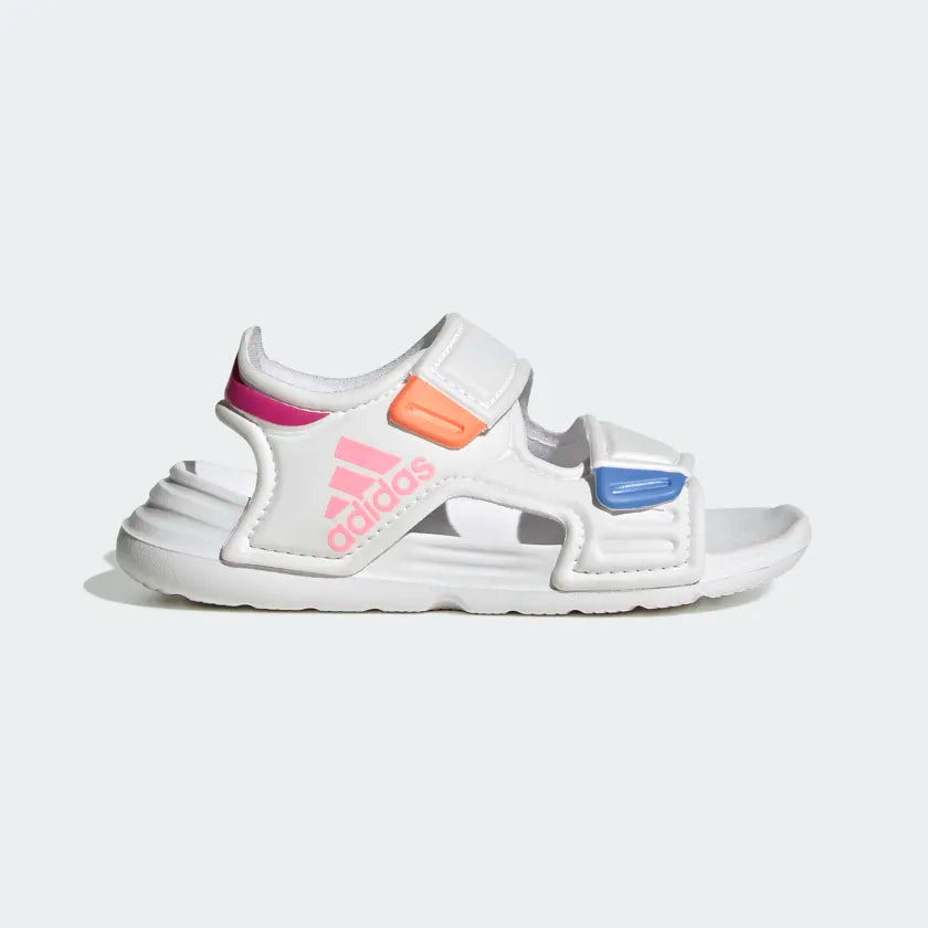 Sunscreen, check. Bucket hat, check. Blow-up unicorn? Maybe later. Let your aquanaut explore the shore in these toddlers' adidas sandals. Adjustable hook-and-loop straps make them easy to get on and off. A grippy outsole leaves tracks in the sand as the sun sets on their perfect day.