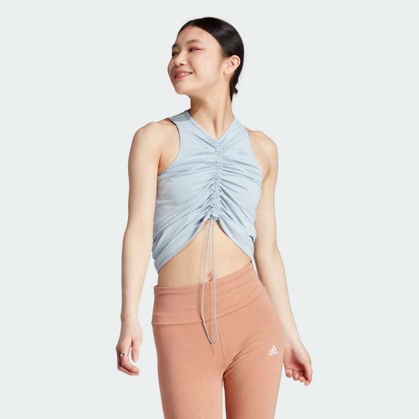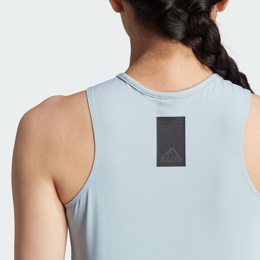 Say so long to the city. With its sleek lines and stretchy fabric, this adidas tee takes you seamlessly from giant skyscrapers to the great outdoors. AEROREADY technology keeps you feeling dry wherever you roam. Tighten up the bungee hem for a waist-cinching fit.