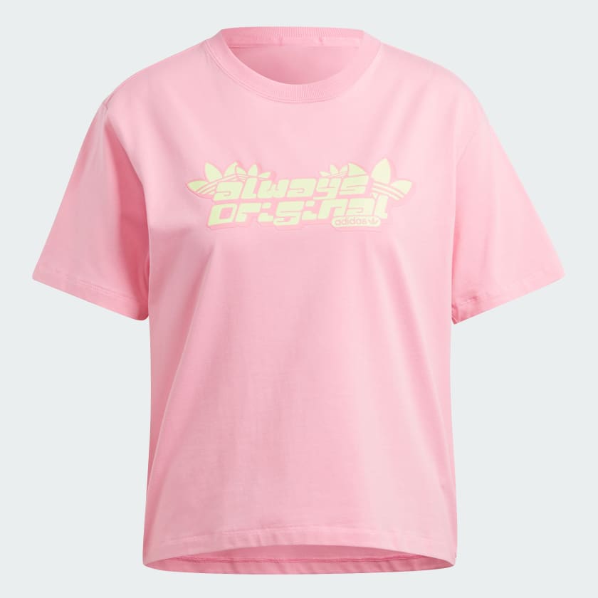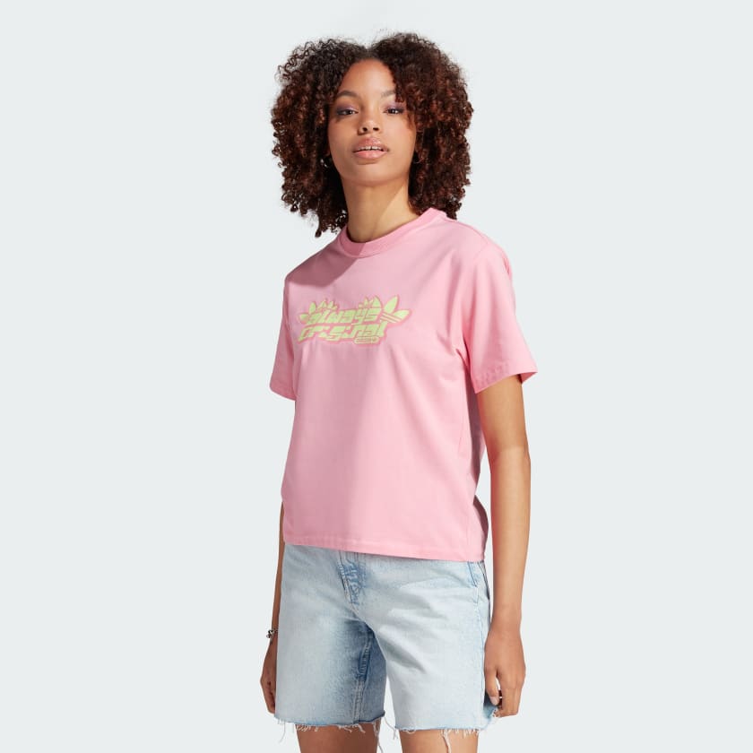 Soft cotton, tropical vibes — what's not to love. This adidas tee helps you look good while you kick back and relax. A playful graphic pops on the front. Complete the casual look with leggings or shorts and maybe some slides. Anything goes.