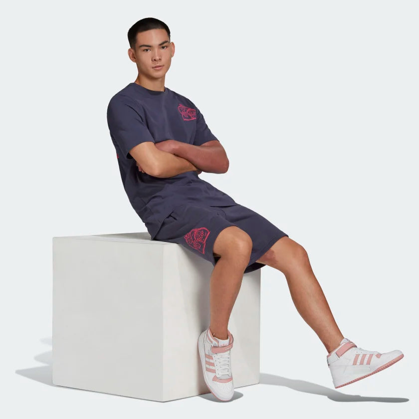 Monsters! These fun little creatures have been spotted on murals in Paris, Milan, Tokyo and NYC — a result of brilliant brushstrokes from Brooklyn artist Kevin Lyons. Now they're ready to take over your outfit on these adidas shorts, with an eye-catching graphic on the leg. Soft cotton French terry keeps you comfortable throughout the day. Our cotton products support more sustainable cotton farming.