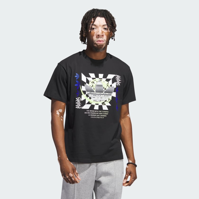 Make a bold statement with this effortlessly cool adidas tee. Featuring a sleek, abstract Trefoil logo graphic, this dynamic shirt is cut from soft cotton jersey that keeps you feeling comfortable all day. Edgy yet easygoing, it's the perfect option to layer under your favourite jacket or hoodie.