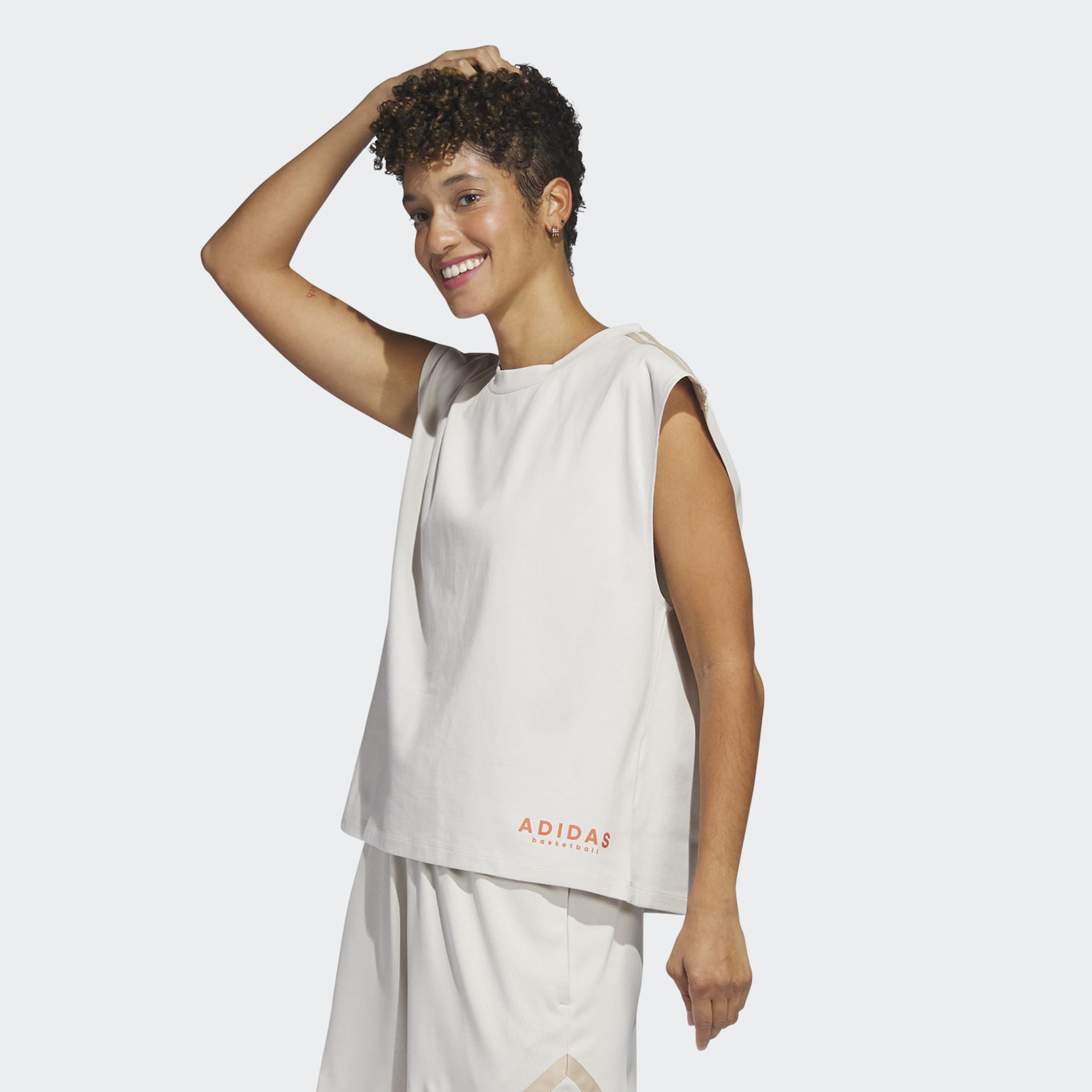 Celebrate the rich history of basketball style with this tank from adidas. Made from a soft and durable blend of cotton and recycled polyester jersey. The loose fit and sleeveless design give you full range of motion as you jump to score. The adidas Basketball logo on the lower front and the Three Columns logo on the back complete the look.