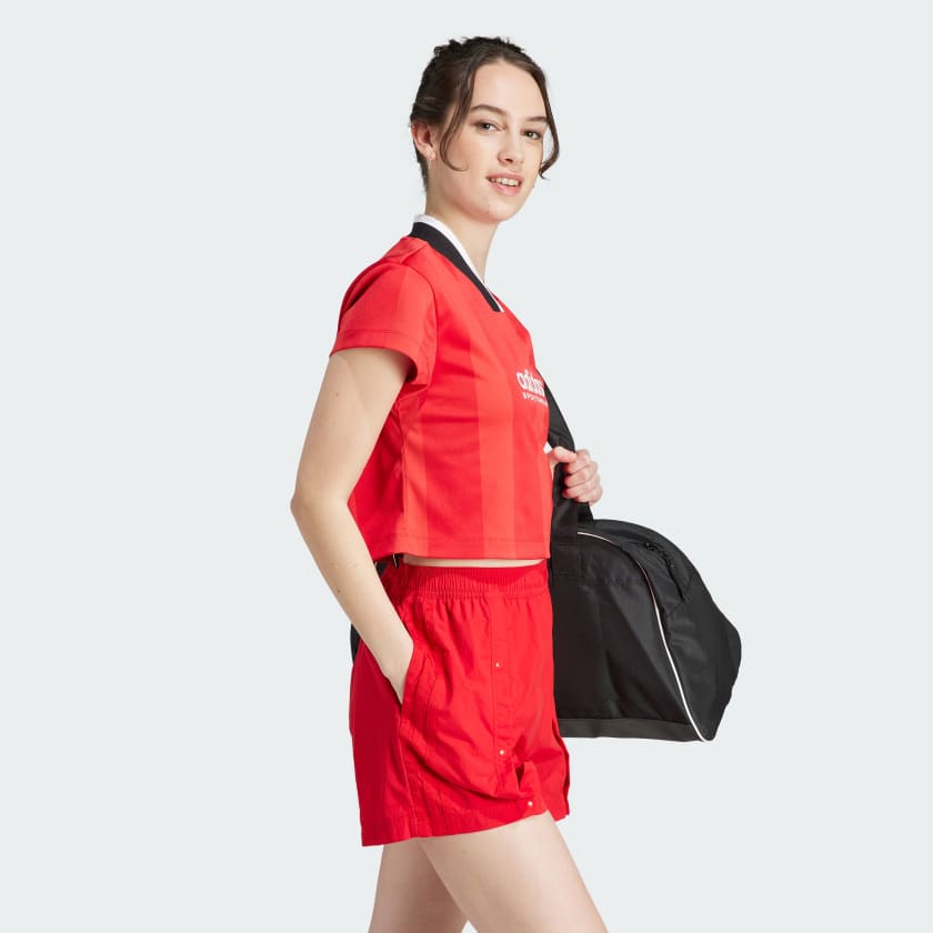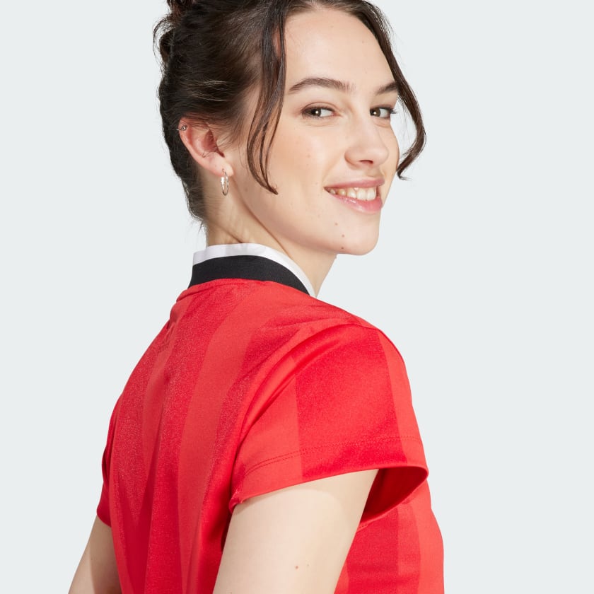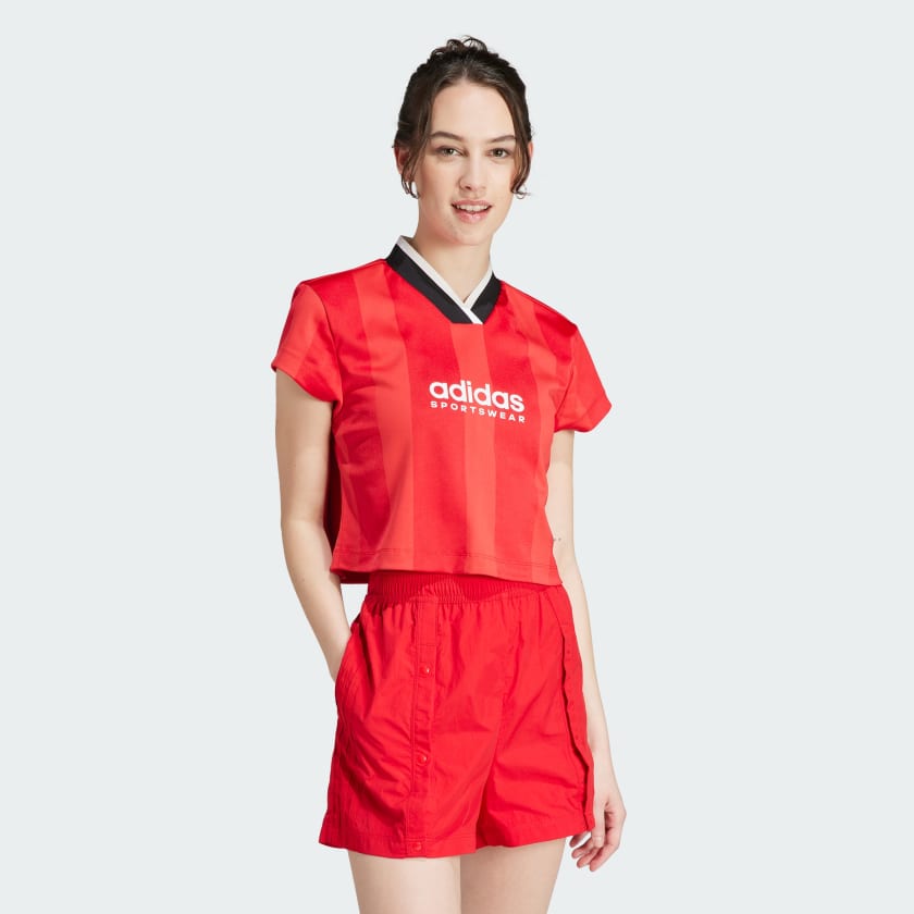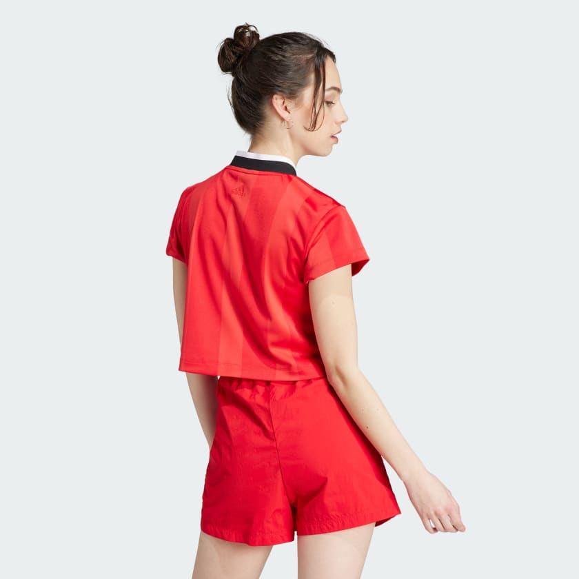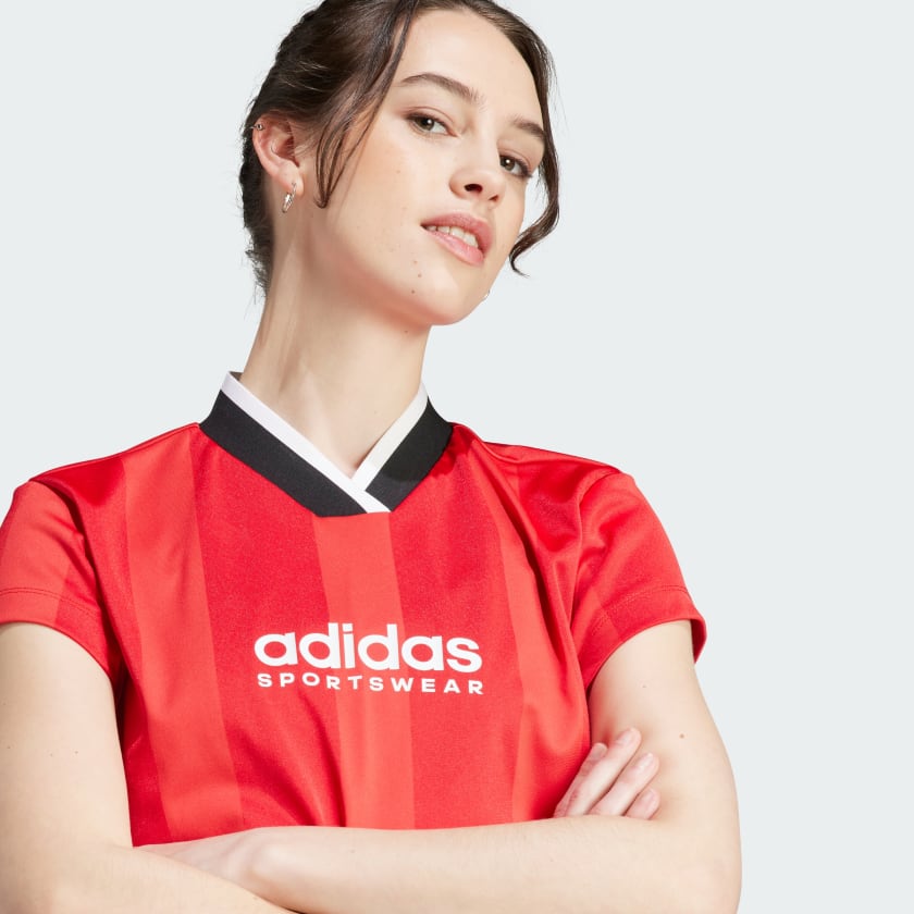 Inspired by the spirit of sport, reimagined for your daily moves. This adidas Tiro crop tee carries you through the day in comfort. Pair it with worn-in denim or straight-leg pants. Embrace the mix of fashion and soccer and go all out. A ribbed, stand-up collar adds a premium finish.