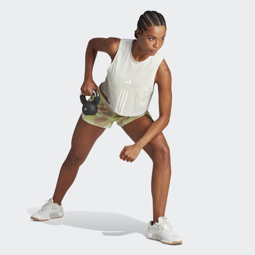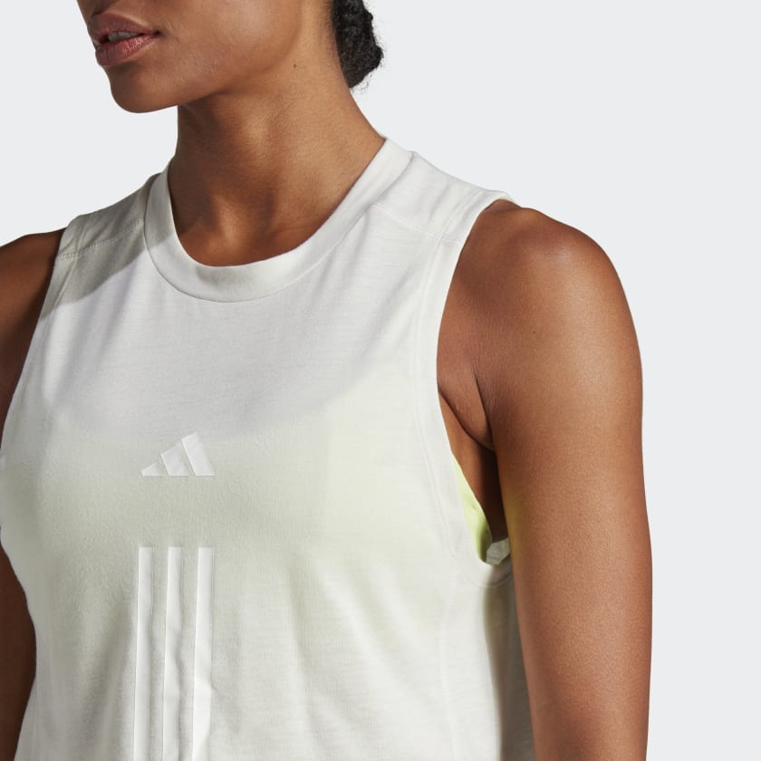 Stay dry when the heat is on. This adidas loose-fitting training tank top features moisture-managing AEROREADY to keep you dry. The crop silhouette reveals a bit of midriff, and bold 3-Stripes add a sporty touch.
